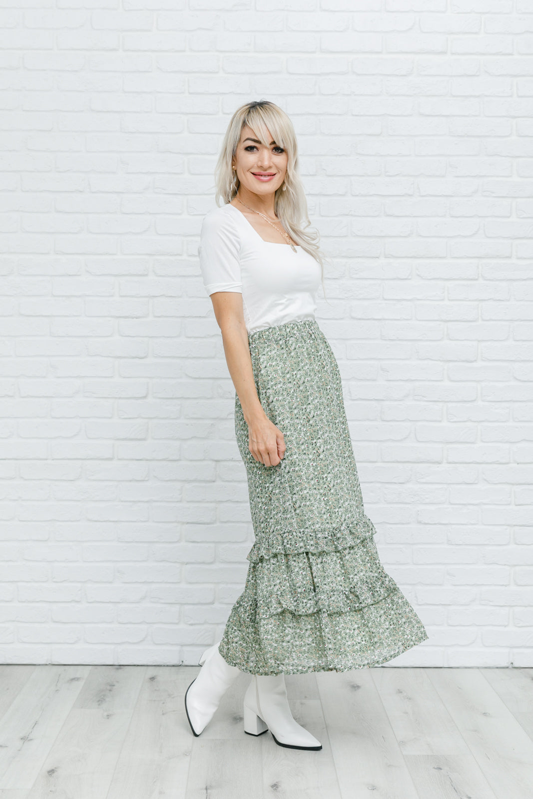 Truly a spring essential because what’s a spring wardrobe without a floral print skirt! A lightweight woven polyester fabric gives this piece a beautiful movement and the shape is adorable, falling mid-calf & decorated in 3 dainty sets of ruffles. Pair this with white booties, and your favorite blouse for the cutest spring look!